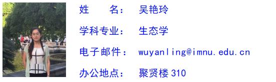 吴艳玲,女,汉族,中共党员,博士,副教授,硕士研究生导师。必赢76net线路官网生态学系系主任。主要从事草地生态学、土壤动物生态学领域的研究工作,主持国家自然科学基金项目1项,省部级、校级项目5项,参与国家级项目多项,发表国内核心期刊论文10余篇,出版专著1部。曾获得“优秀党务工作者”、“第十一届青年教师技能大赛”一等奖和“优秀班主任”等称号。承担普通生态学、环境学概论等相关课程的教学和专业实习指导工作。