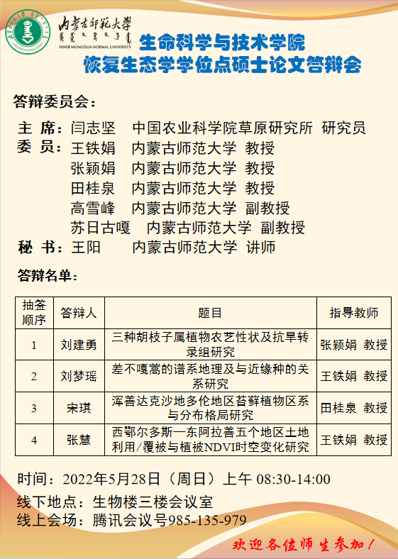 必赢76net线路官网恢复生态学学位点硕士论文答辩会